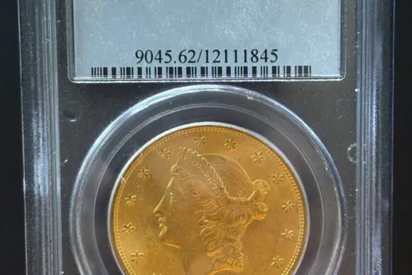 Enhance your collection with this stunning 1904 Liberty Head Double Eagle Coin, graded MS62 by PCGS. This exquisite piece of history is not just a coin; it’s an investment in legacy and craftsmanship. Encased in a PCGS capsule, this coin is protected to maintain its integrity and is ready for display or investment. Weighing 1 Troy Oz and crafted from 22 karat gold, this double eagle showcases both beauty and value.